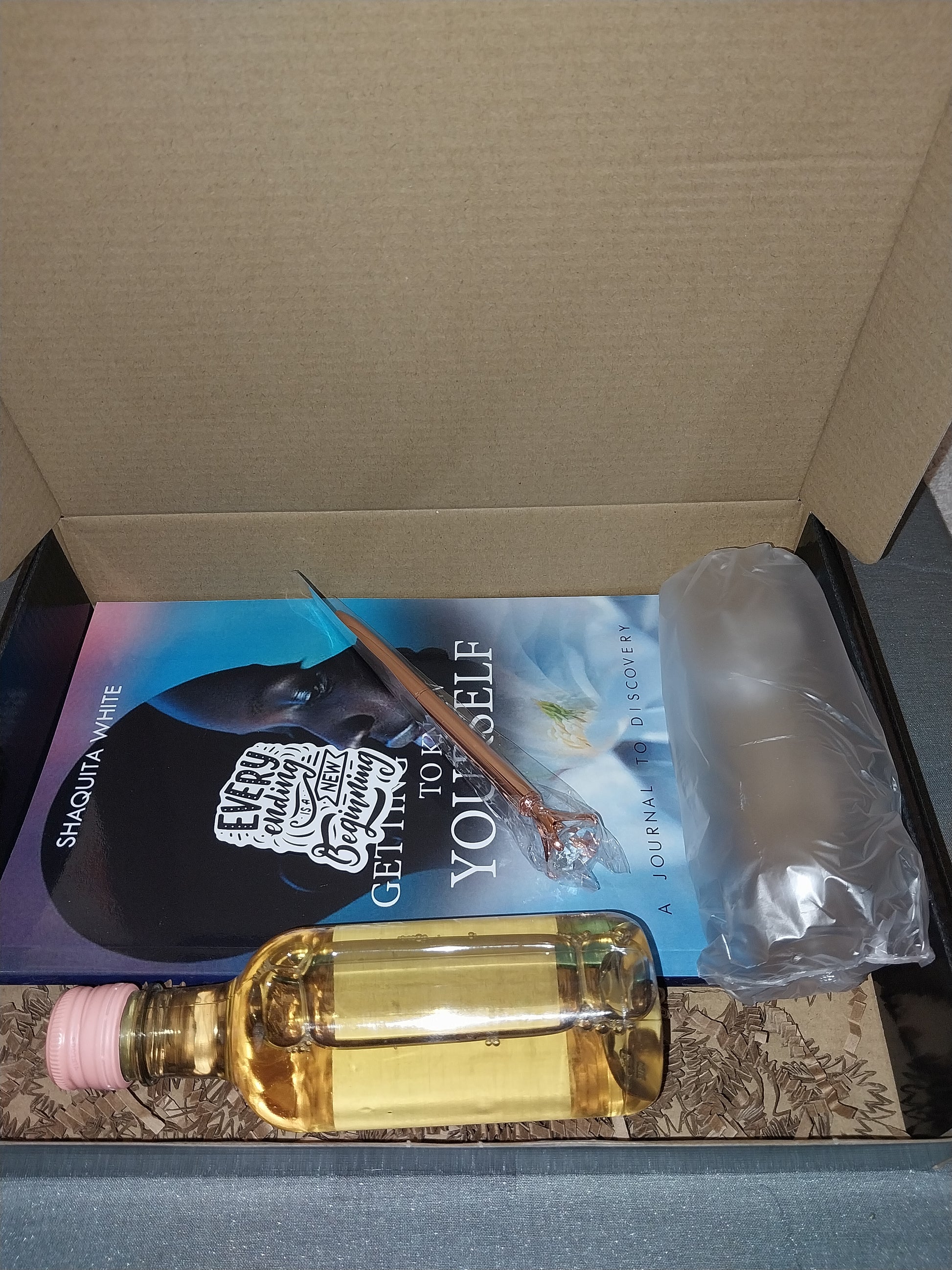 This journal is to help dig deep inside of yourself and to encourage you to do whatever it is that you keep putting off. Each journal come signed with a pen, disposable wine glass and a beverage. Enjoy!
